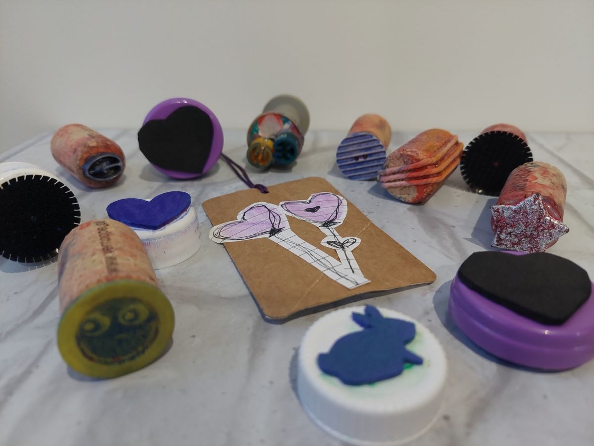 Com objetos do dia-a-dia, como esponjas gastas, tampinhas, rolhas e botões, vamos transformar em carimbos divertidos e criar desenhos e etiquetas únicas, dando uma nova vida a materiais que seriam descartados.