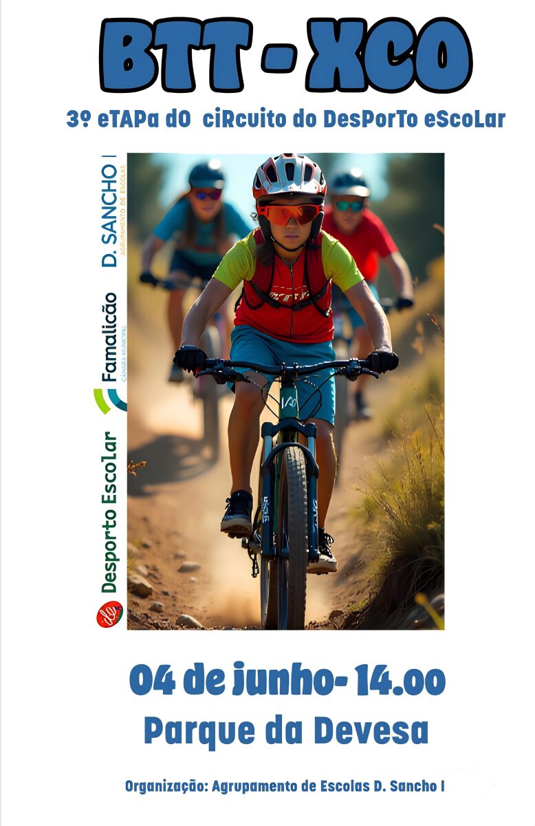O Agrupamento de Escolas D. Sancho I, em colaboração com a Coordenação Local do Desporto Escolar de Braga e Viana do Castelo e a Câmara Municipal de Vila Nova de Famalicão, tem o prazer de anunciar a realização da terceira etapa da competição de BTT-XCO. O evento acontecerá no dia 4 de junho, às 14h00, no Parque da Devesa, e promete reunir jovens e promissores talentos da modalidade.