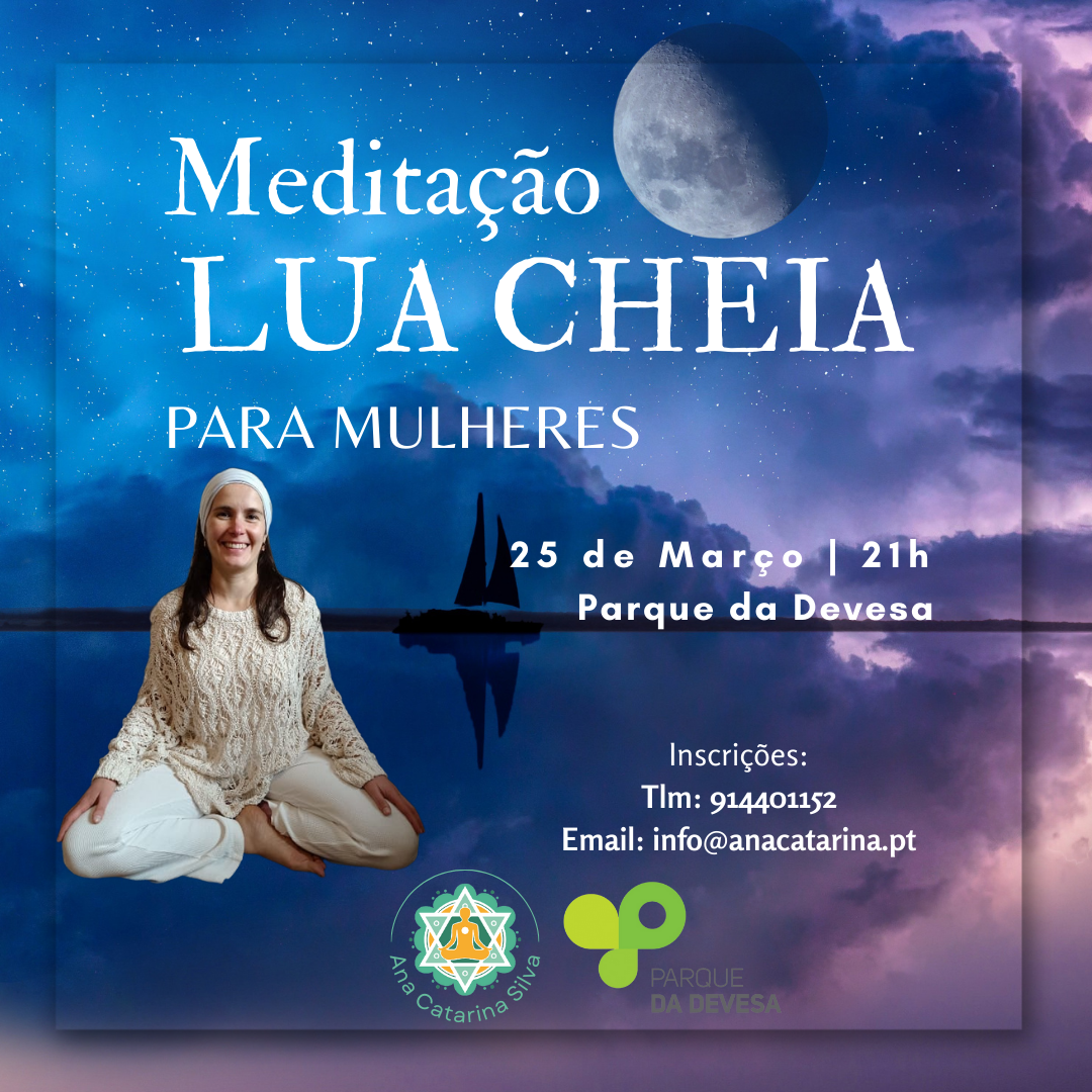 Um encontro para Mulheres durante a altura da Lua Cheia, com práticas de Meditação, técnicas de respiração, mantras (sons sagrados), momentos de reflexão, com o objetivo de trazer mais clareza da mente, criando uma conexão profunda interior de harmonia e bem-estar.
